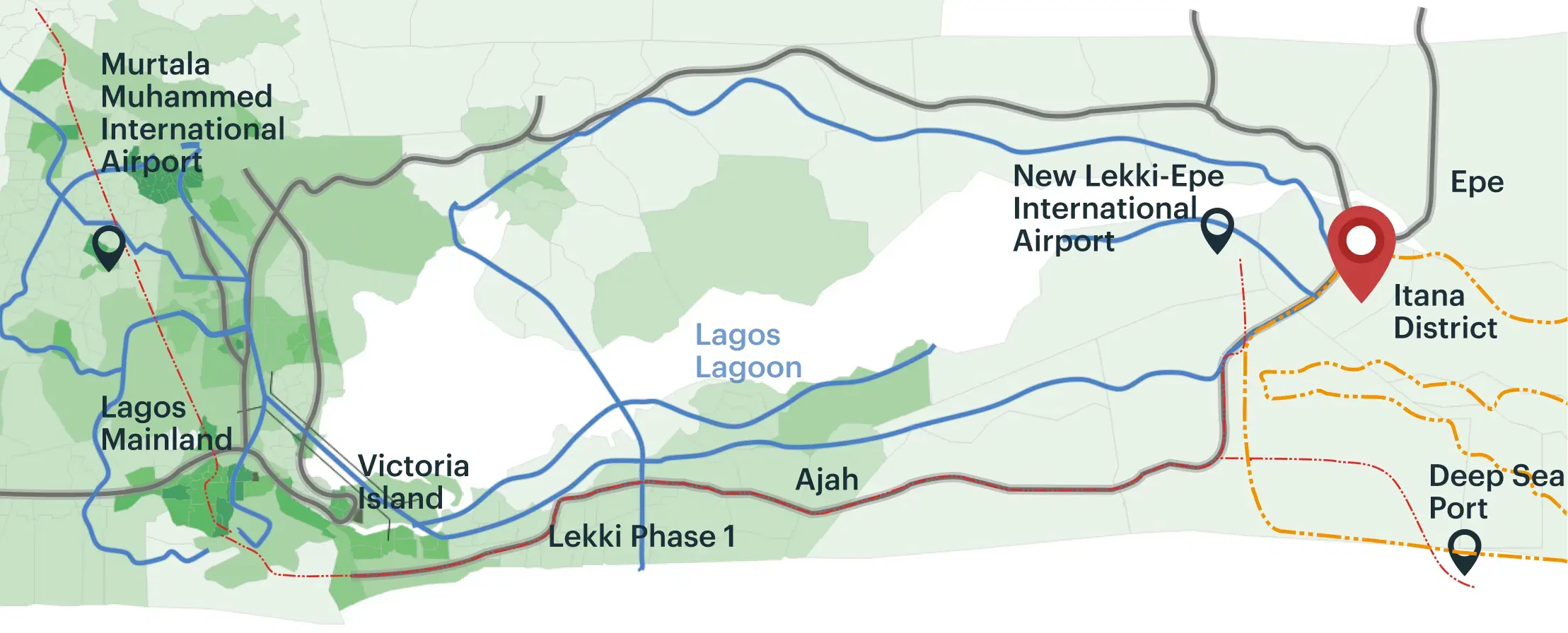Living in Itana means 24/7 power, clean water, and reliable Internet connectivity. Infrastructure is built from the ground up with sustainability in mind, separate from the power grid of Lagos. Yet, we understand that being in close proximity to home, family, and friends is important. Hence, we will be providing reliable transit service to and from Lagos by land, water, and air.